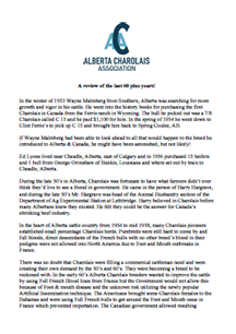 The following historical information was compiled by Hedi Trescher of Brisco Charolais, Brisco, BC from Charolais Bannersand the White Gold history book.